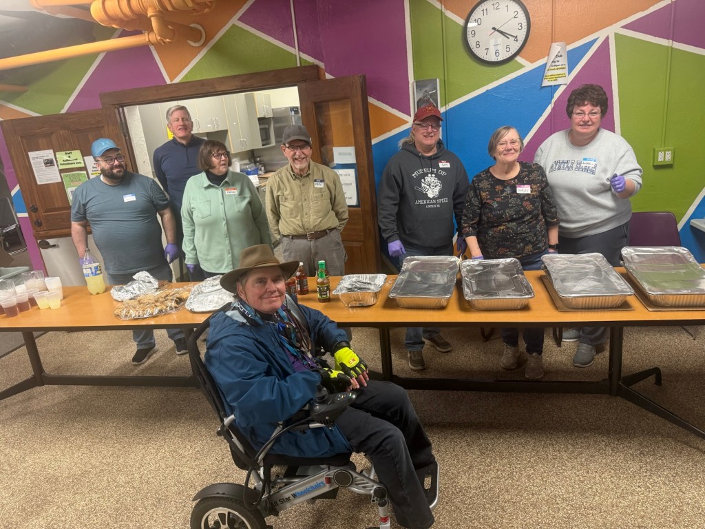 If you were here last week you might have seen a wonderful group of volunteers serving the best pizza with salad ever only to see a struggling young man answer his phone, then jump up and run outside and return soon and exclaim, “I got a job!” Turns out at the same manufacturing company, DeeZee Manufacturing, the very place the man who provided and served the Pizza for tonight’s meal!